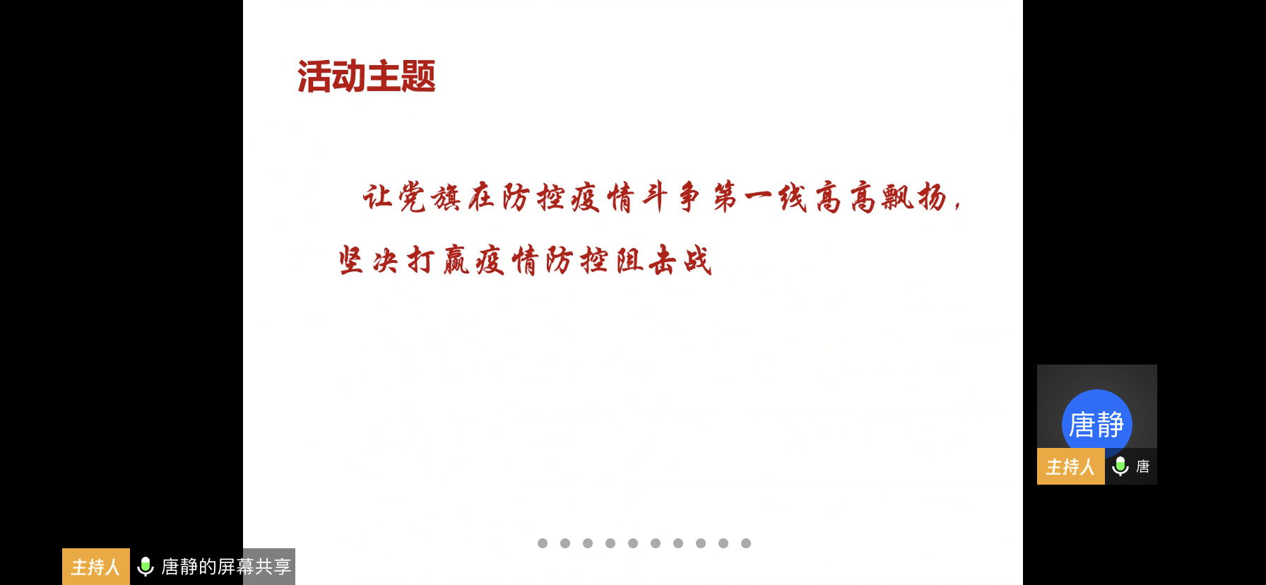 本网讯(通讯员 摄影 万贝凡 刘周)3月12日、14日,我院学生各党支部在线上召开了以“让党旗在防控疫情斗争第一线高高飘扬,坚决打赢疫情防控阻击战”为主题的线上主题党日活动。