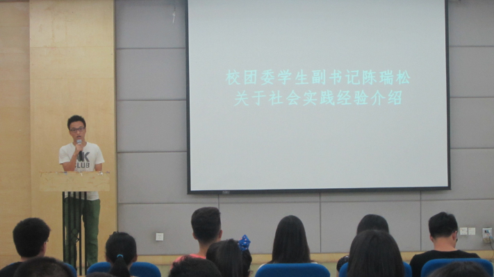 5月29日下午,经济学系暑期社会实践动员大会在大学生活动中心五号报告厅举行,出席本次大会的嘉宾有经济学系分团委书记丁升老师、经济学系学生会主席团的成员、校实践部前任部长陈瑞松、特邀优秀社会实践团队队长李靖和经济学系全体大一学生。