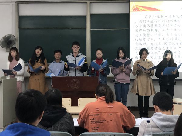11 月24 日,民主生活会成功举行。本环节发展对象分为五个小组进行 25 分钟以内的 PPT 展示,充分表达小组对主题的理解。戏剧化表演、大合唱、诗歌朗诵吸人眼球,内容丰富,形式多样。随后,各支部党员根据发展对象的自传与自我剖析,在学习生活、入党动机、自身优缺点等方面对每个小组的展示做了点评并打分。此次剖析考察了发展对象的综合素质,也对他们提出了更高的要求。